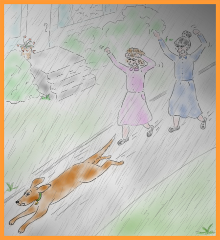 “So he ran on into the dark and stormy night. But he never gave up hope because there are plenty of humans to choose from. Plenty! He just had to find a good one. And one who was smart enough to be properly trained!”
